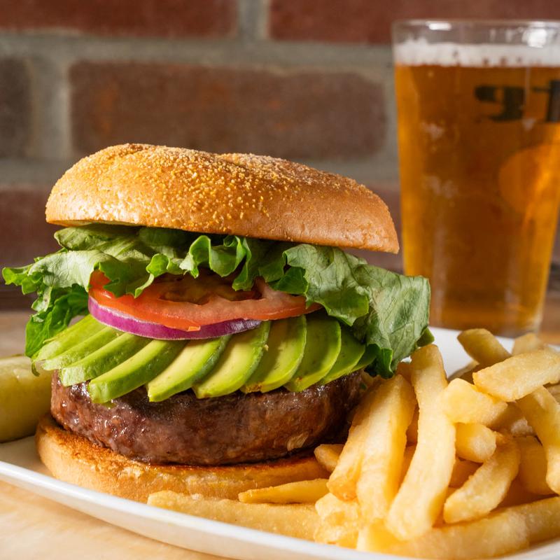 All burgers served with lettuce, tomato & onion. Your Choice of Fries or Chips | Pure Choice Angus Beef | Extra patty $8.00